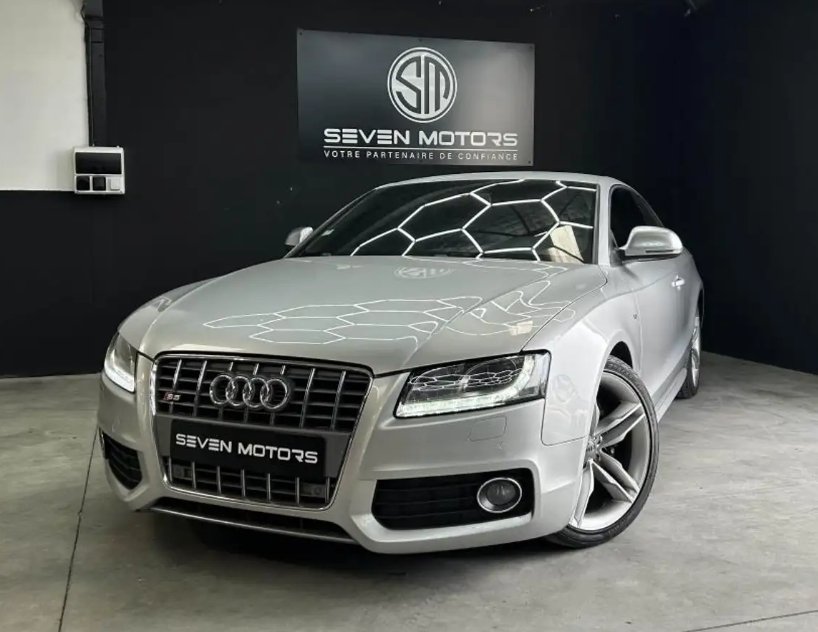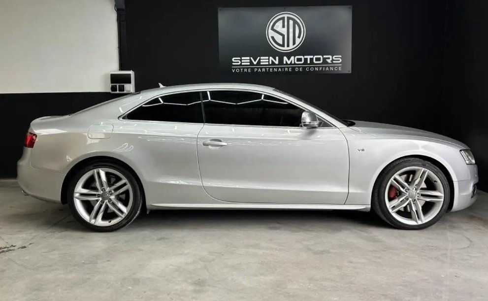 Audi S5 Coupé Quattro 4.2 V8 FSI 354 ch Découvrez ce superbe Audi S5 Coupé Quattro, véritable icône de puissance avec son moteur V8 atmosphérique, soigneusement préparé par nos équipes. Véhicule certifié, bénéficiant d'équipements complets et prêt à être remis à son futur conducteur. Véhicule visible uniquement sur rendez vous. Présentation générale : - Modèle : Audi S5 Coupé - Motorisation : essence 4.2 l V8 FSI, 354 ch - Boîte : manuelle 6 rapports - Année : 2007 - Kilométrage : 111 000 km - Couleur extérieure : gris Informations Complémentaires : - Nombres de propriétaires : 6 - Véhicule non-fumeur - Véhicule d'origine française Historique Entretien : - Révision 1 22/10/08 (Vidange) - Révsion 2 20/12/08 (Changement des 4 pneus) - Révision 3 16/07/09 à 15 322 km (Remplace Baguette + Spoiler AR) - Révision 5 27/08/09 à 35 160 km (Vidange + filtre) - Révision 6 29/07/10 à 55 011 km (Changement boîte de vitesses) - Révision 7 23/09/10 (Disque frein) - Révision 8 21/10/10 (Garnitures de frein) - Révision 9 16/11/2010 (Vidange + Filtre + Bougie d'allumage) - Révision 10 17/10/2022 à 103 424 km (Vidange + Filtres + Bougies + Disques + Plaquettes AV/AR) Points forts : - Ligne de Coupé au style intemporel et finition S pour une présence routière musclée et élégante. - Motorisation V8 atmosphérique 354 ch couplée à une boîte manuelle 6 rapports : un plaisir de conduite pur et une sonorité exceptionnelle. - Equipements de confort et technologie embarquée : Système de navigation GPS, interface Bluetooth avec commandes vocales et lecteur multimédia complet. - Confort et ergonomie : sièges sport en cuir intégral avec réglages électriques, volant sport en cuir multifonctions, climatisation automatique multizone. - Sécurité et praticité : projecteurs Xénon, radars de stationnement avant et arrière, transmission intégrale Quattro pour une motricité optimale. Équipements principaux : - Système de navigation - Interface Bluetooth - Commandes vocales - Lecteur multimédia (USB, auxiliaire, double carte